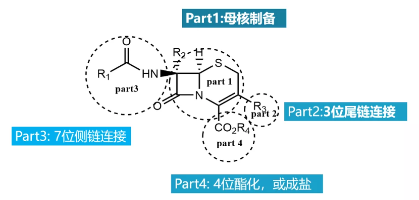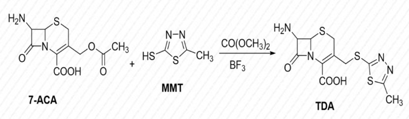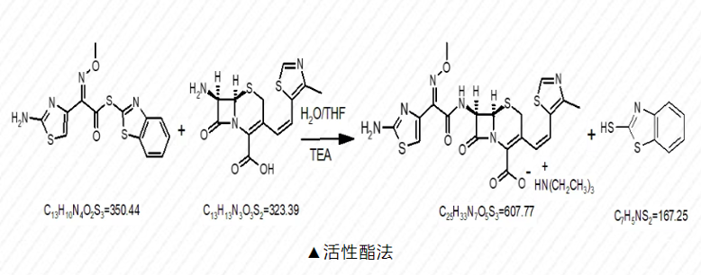 以7-ACA為起始原料,在路易斯酸存在下,與尾鏈連接的方式較多。