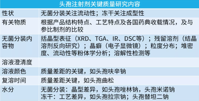 2)頭孢注射劑關(guān)鍵質(zhì)量研究內(nèi)容