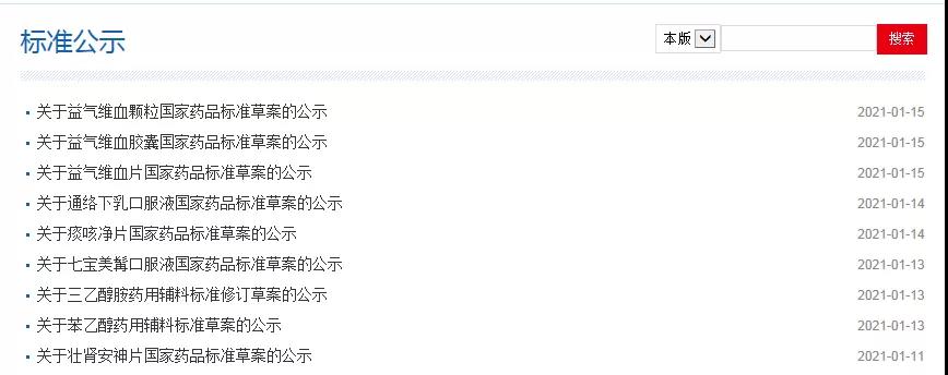 本周壯腎安神片、七寶美髯口服液、通絡(luò)下乳口服液、痰咳凈片、益氣維血顆粒、益氣維血膠囊、益氣維血片國家藥品標(biāo)準(zhǔn)草案公示,苯乙醇藥用輔料標(biāo)準(zhǔn)草案公示、三乙醇胺藥用輔料標(biāo)準(zhǔn)修訂草案公示。