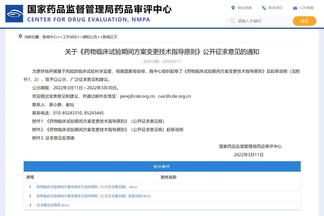 關(guān)于《藥物臨床試驗期間方案變更技術(shù)指導(dǎo)原則》公開征求意見的通知
