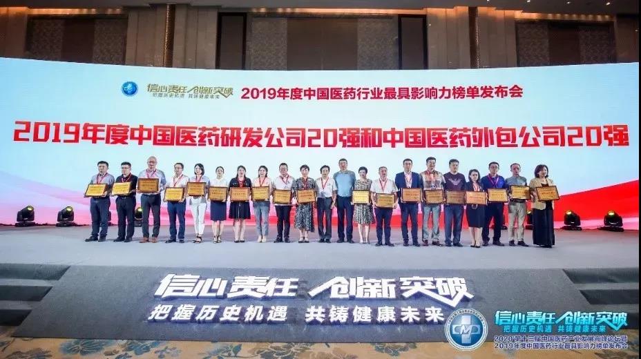 2019年度中國醫(yī)藥行業(yè)最具影響力榜單發(fā)布,新領先作為國內最大的全產業(yè)鏈CRO公司,榮獲2019年度中國醫(yī)藥研發(fā)公司榜首!