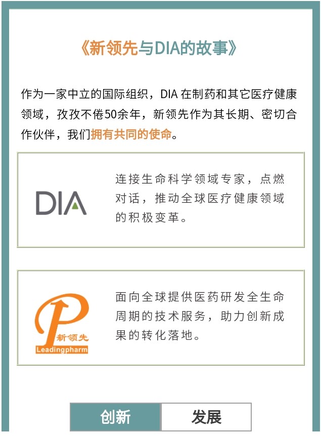 匯聚研發(fā)摯友 | 新領(lǐng)先醫(yī)藥攜“CXO解決方案”助力2021年DIA中國年會(huì)!