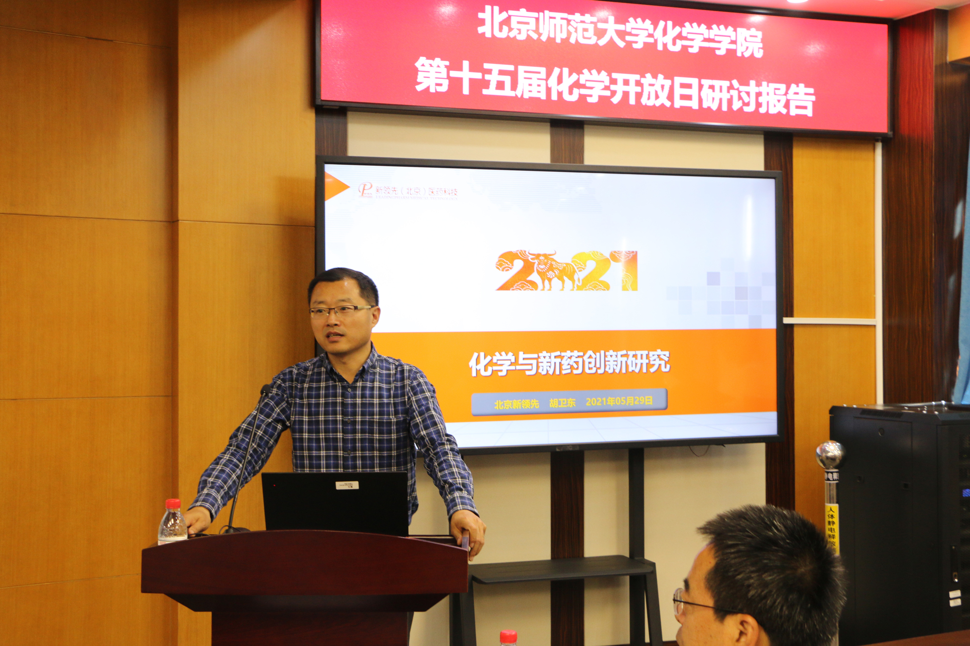 新領(lǐng)先醫(yī)藥雜質(zhì)研究事業(yè)部總經(jīng)理胡衛(wèi)東博士作題為《化學(xué)與創(chuàng)新藥物研究》的主題報(bào)告,向同學(xué)們深入介紹化學(xué)與藥學(xué)的關(guān)系、藥物研發(fā)行業(yè)的發(fā)展以及化藥創(chuàng)新研究策略等。隨后,胡博士耐心地回答了同學(xué)們的問題,現(xiàn)場氣氛活躍。