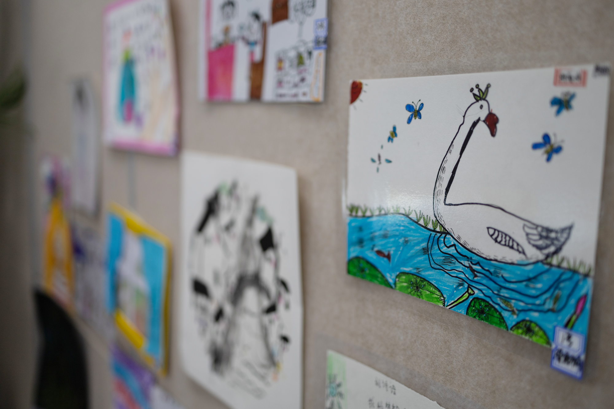 會(huì)場(chǎng)的墻面上,張貼了孩子們的繪畫(huà)作品,孩子們的畫(huà)作有的記錄了迷人的風(fēng)景,有的描繪了自己長(zhǎng)大后的夢(mèng)想。天馬行空的小畫(huà)家們依次向大家介紹了自己的畫(huà)作,將自己的心聲與大家分享。