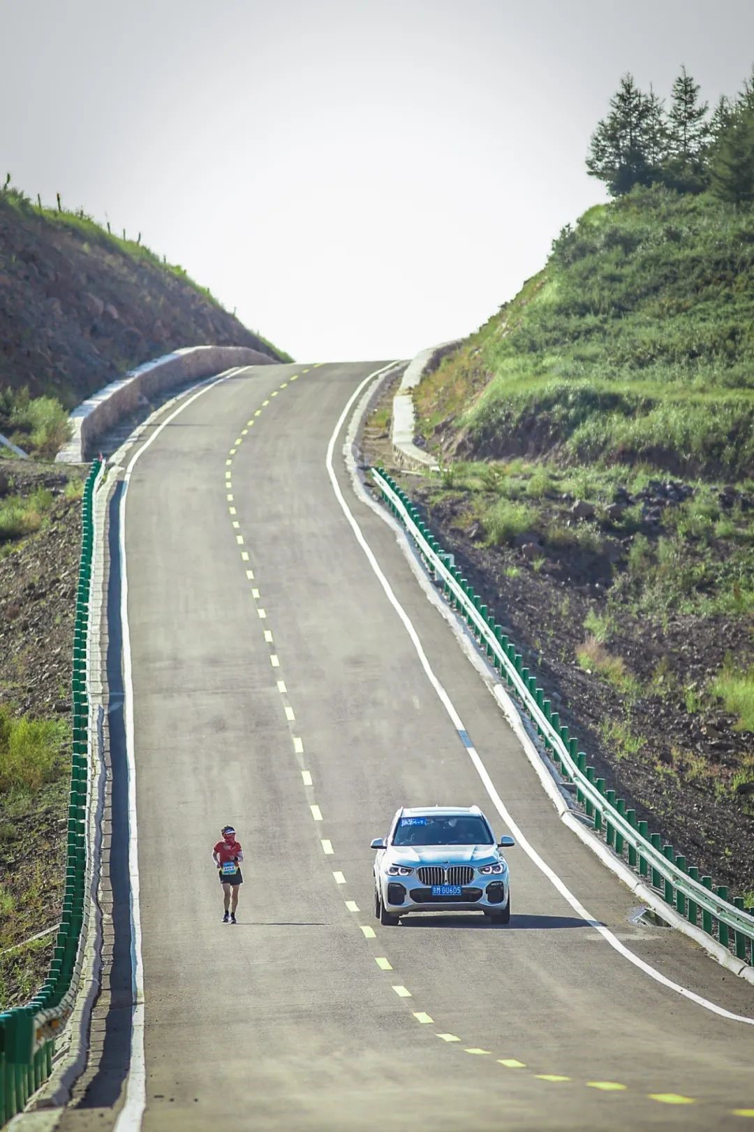 越山向海人車接力中國賽是一項團隊人車接力賽,以團隊為單位,每支隊伍由5名隊員和1部車輛構(gòu)成,隊伍中一名選手完成一個賽段的奔跑,到達接力點換人,隊伍車輛搭載其余選手至下一接力點。以此往返,以每支團隊的比賽用時進行排名。全長145.6公里的賽道,根據(jù)賽道設(shè)計不同距離的接力點。
